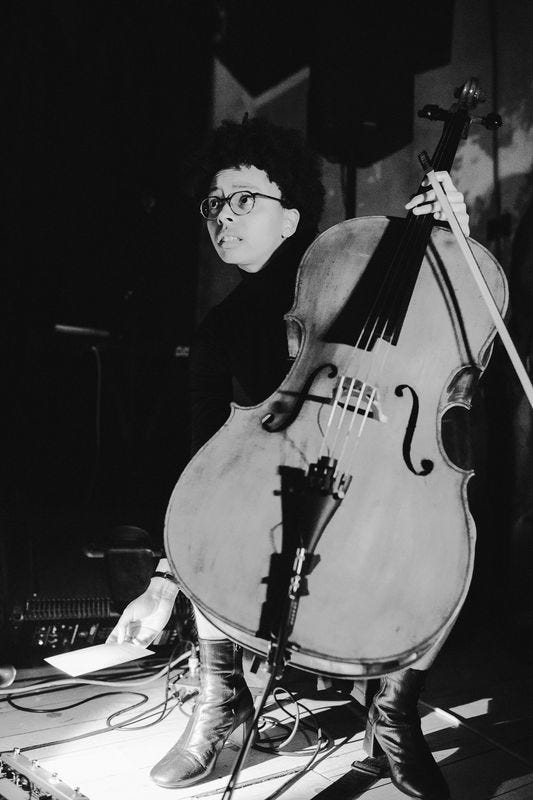 Originally from Florida, Simone Seales is a Glasgow-based cellist and performance artist. They focus on free improvisation, live looping, poetry, and devising music for theatre. Through their collaborative and creative process, they prioritize play, silliness, and connection.